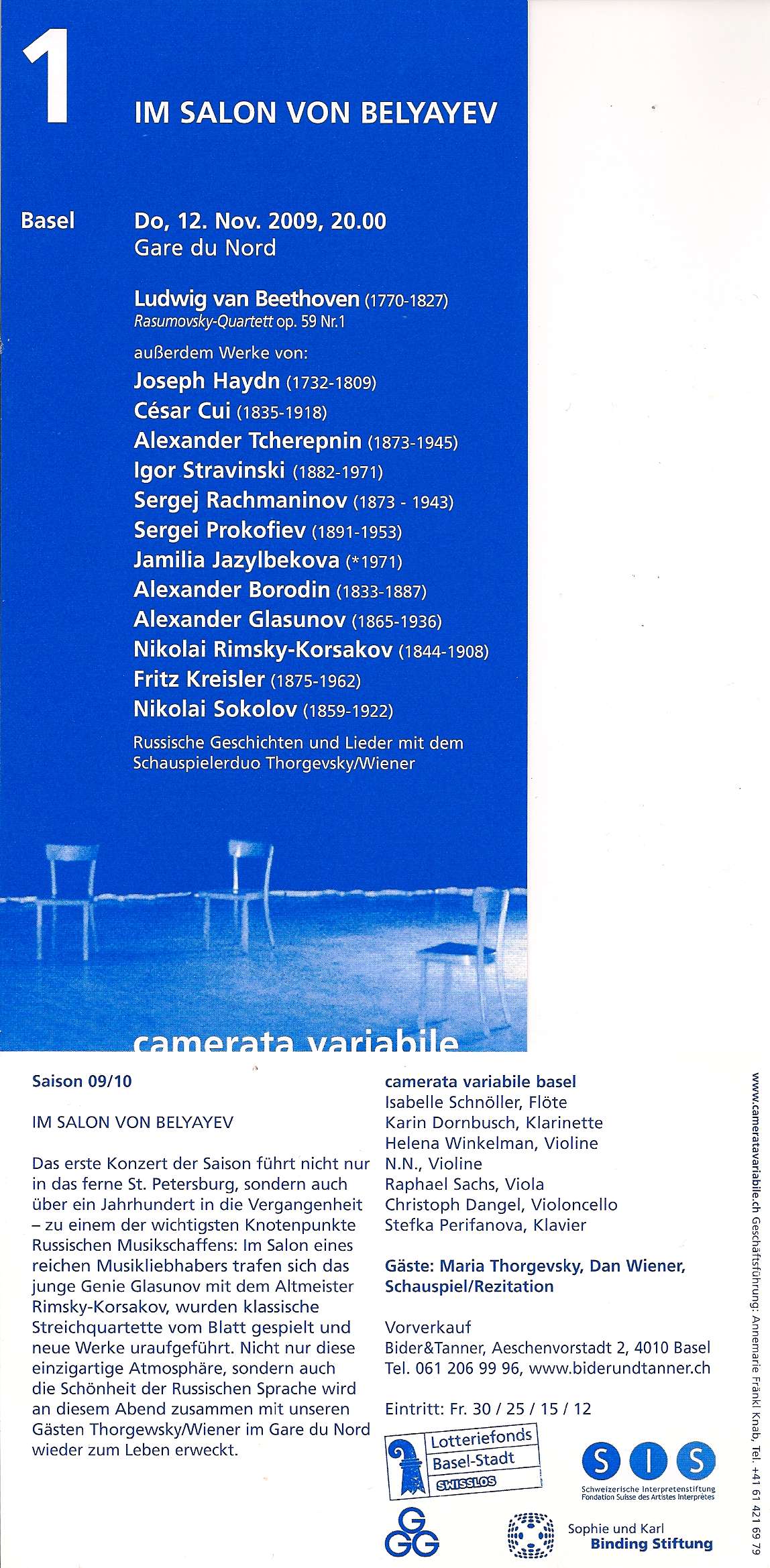 12.Nov. 09 Camerata Variabile Basel (russian music), "Les Vendredis de Belyayev", Gare du Nord Basel